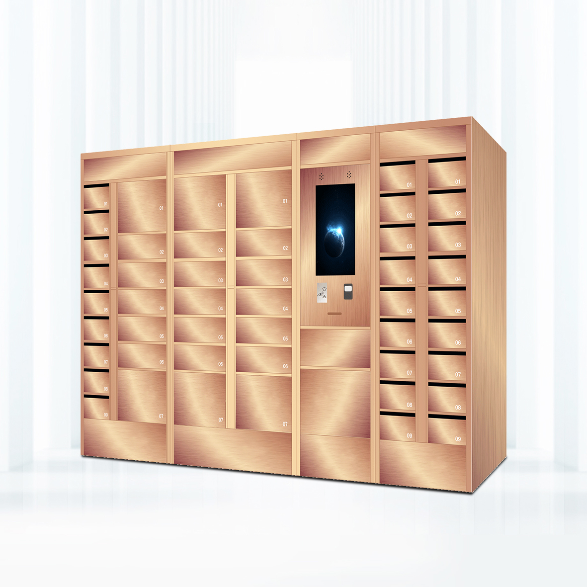 超市、商場、藥店的共同特點(diǎn)是顧客流量較大,流動性大,難于管理,所以適合隨機(jī)一次性存包方案,即使用機(jī)設(shè)條碼式智能寄存柜。